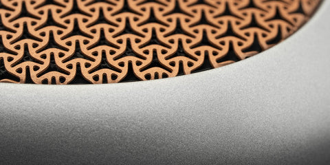 Symmetrically placed on either side of the diaphragm, our neodymium magnets are arranged into a Hybrid Array to create a 0.3 Tesla Isodynamic magnetic field required for a uniform activation across the whole diaphragm surface.